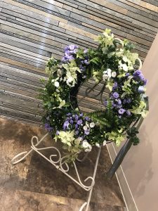 本日から色合いが素敵なハンキングリースを入り口の前に飾っています![]()