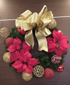 ツリーに合わせてリースも赤色メインで、ゴージャスな感じになってます。